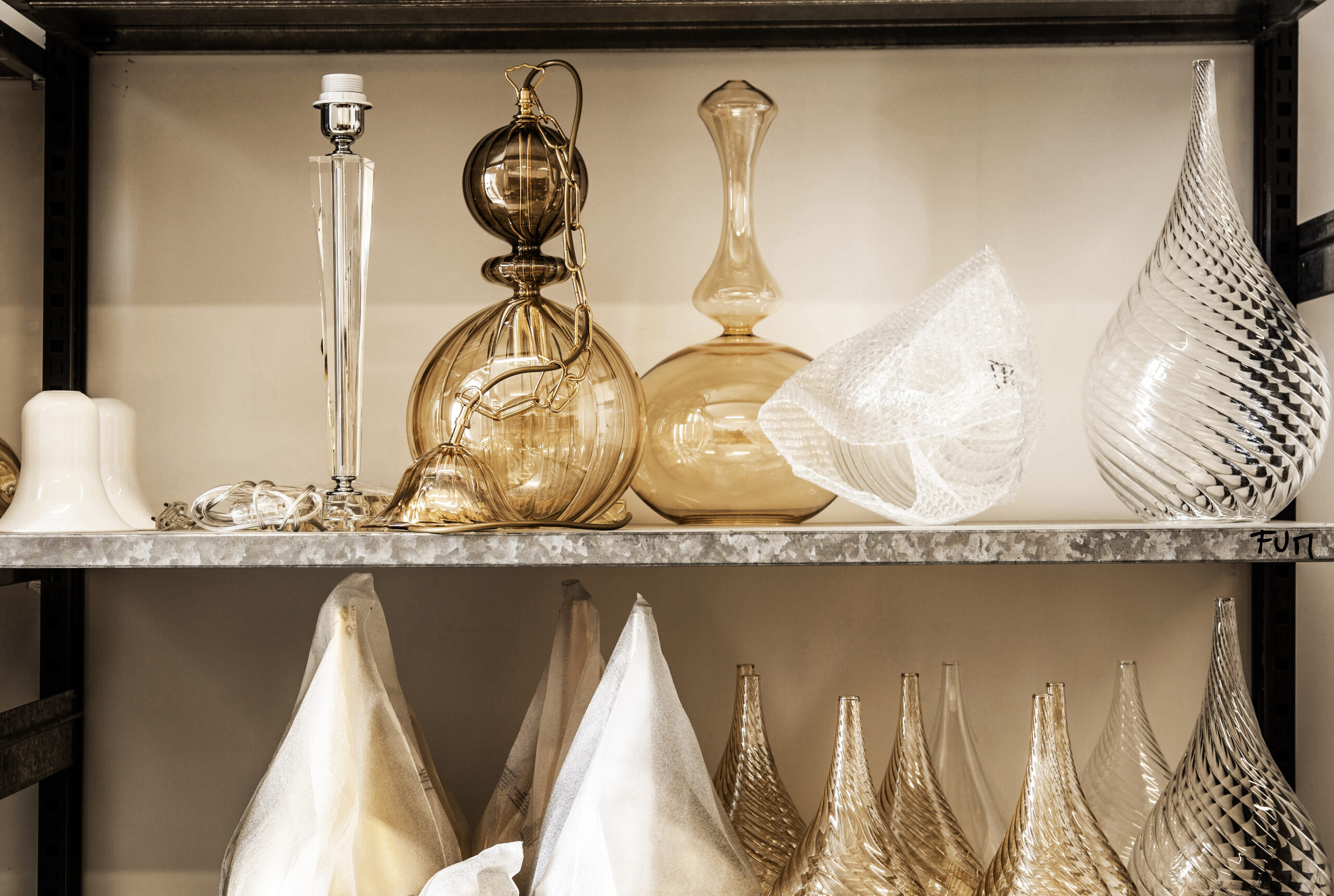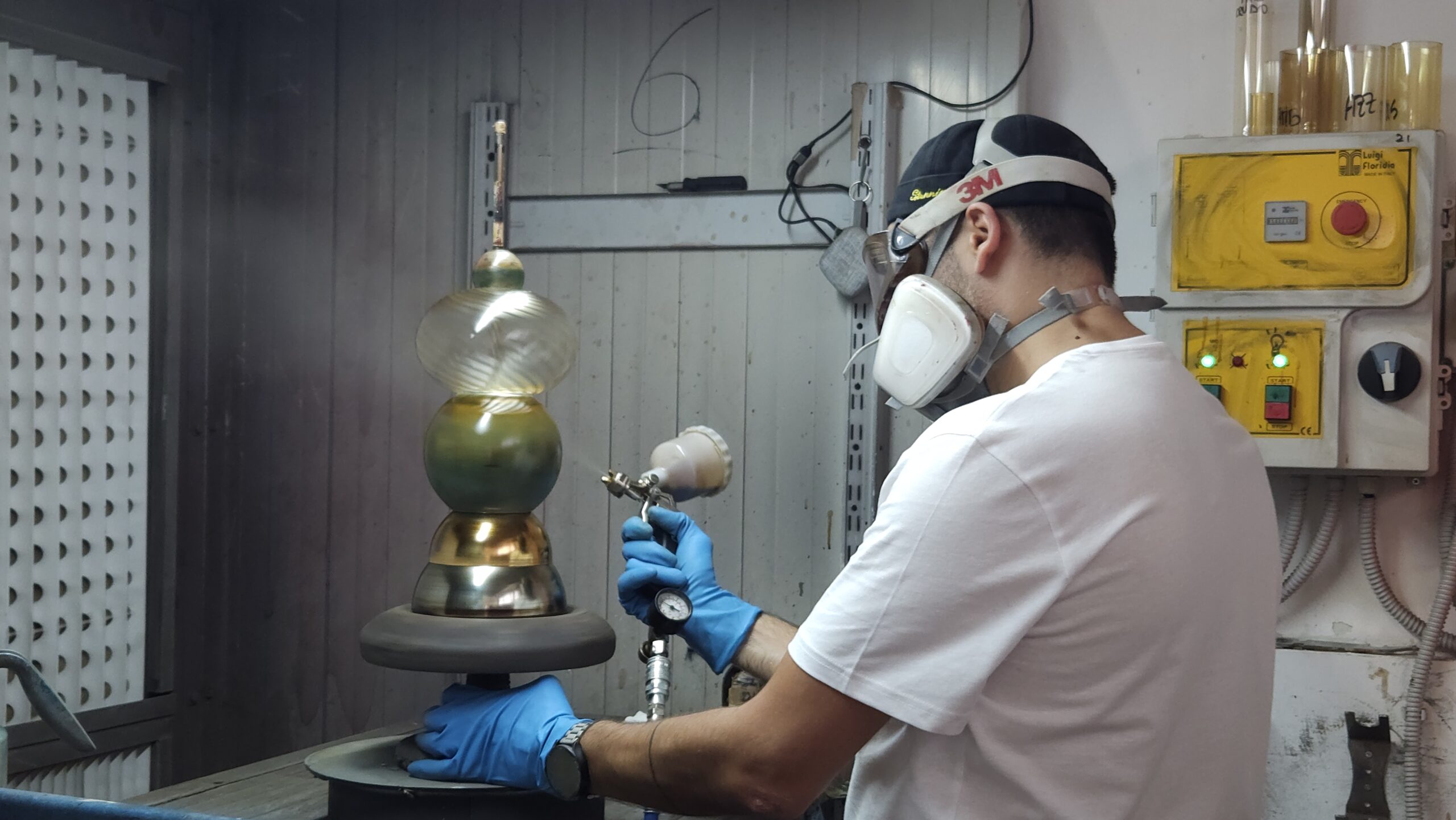 Ogni prodotto Fabglass nasce interamente nei nostri laboratori. La soffiatura dà forma al vetro, la verniciatura ne definisce il carattere, il montaggio completa la struttura. Ogni fase è seguita internamente e conclusa con un complesso controllo finale di qualità. Un processo manuale, continuo e coerente, che garantisce qualità e autenticità ad ogni singolo pezzo. Questo è il nostro modo di lavorare. Full Made in Italy.